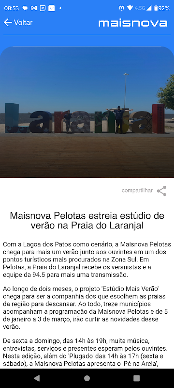 Rede Maisnova использует новый популярный формат прямого вещания, генерируя спутниковые программы для девяти вещательных компаний в штате Риу-Гранди-ду-Сул, что делает ее крупнейшей сетью FM-радио в штате Риу-Гранди-ду-Сул. усиленный и обработанный современным цифровым оборудованием, а также тщательный отбор каждого звука, выходящего в эфир, — вот некоторые из отличий, которые делают «Маиснова» одной из крупнейших сетей в стране и крупнейшей в штате.