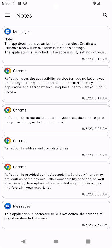 · Reflection использует службу специальных возможностей для регистрации нажатий клавиш на клавиатуре. Откройте его, чтобы найти старые записи. Фильтруйте их по приложениям и ищите по тексту. Перетащите ползунок, чтобы просмотреть историю ввода.