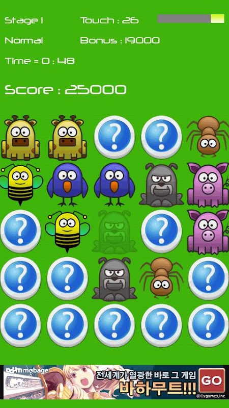 Как только начинается игра, все оборотной стороне карты показано на рисунке. Прикоснитесь к задней части лицевой стороне карты появляется снова отображает одну карту. Важно помнить форме.