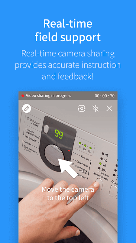 Обеспечивает более быструю удаленную поддержку благодаря совместному использованию экрана устройства и камеры.