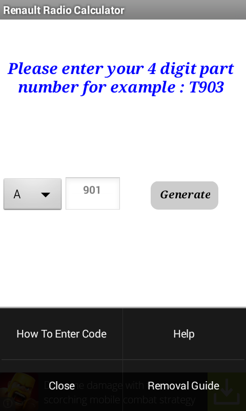 This application can provide you with the original manufacturer's security code required to activate your Renault car radio or CD player following a loss of power.
