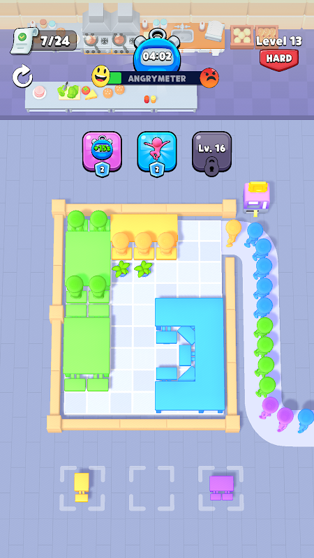 Эта головоломка заставит ваш мозг работать на пределе своих возможностей! Расставьте столы в правильных цветах и рассадите клиентов. Будьте осторожны! Вы же не хотите расстроить сидящих клиентов!
