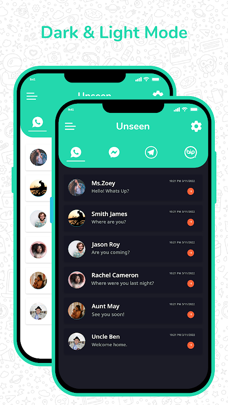 Невидимый | Восстановить удаленные сообщения не поддерживает и никак не связан с Whatsapp, Messenger, Instagram, Imo, Bip, Viber, Telegram, Line, IMO или VK.