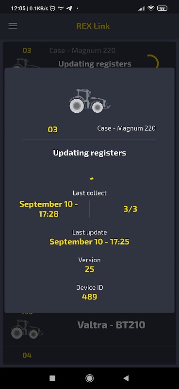 Velos S / A представляет собой простое и бесплатное решение, разработанное для клиентов REX, у которых нет покрытия GPRS или Wi-Fi в полевых условиях, для отправки своих данных. С помощью приложения REX Link вам нужно только активировать связь между REX и REX Link, данные будут переданы, и вы получите доступ к отчетам ваших машин из любого места через портал REX.