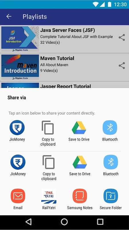 Welcome to the World of FREE Software Training Video Tutorials. Ripples Code app is designed to train you on various technologies like: JavaFx,Jasper Report,Maven, JSF and many more trending technologies.