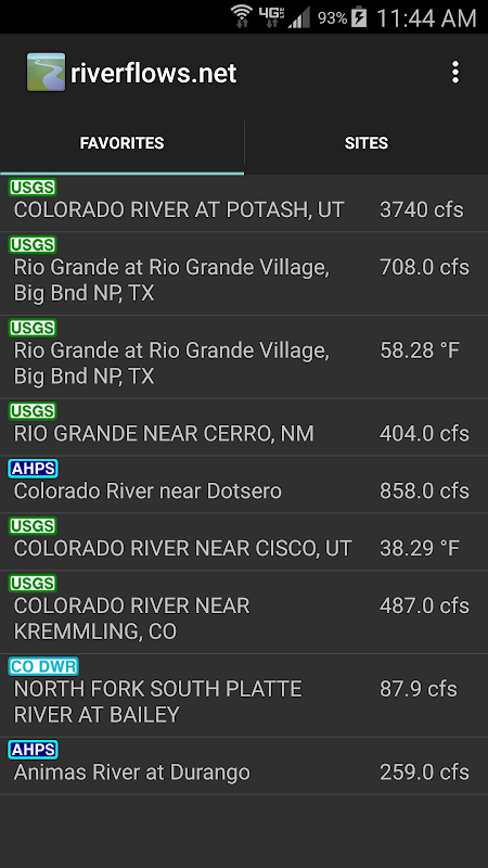 RiverFlows предлагает быстрый и простой способ просмотра данных из участков реки Gage с использованием Android устройства. Это полезно для рыбалки, катание на байдарках, рафтинг, катание на каноэ, или любого другого преследования, которое требует отслеживания на озеро и реку уровней в США