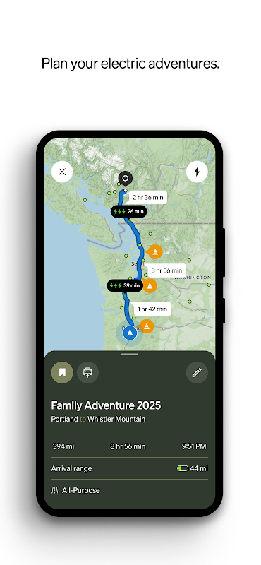 • Планируйте поездки в приложении, чтобы видеть рекомендуемые маршруты и остановки для подзарядки в соответствии с вашими предпочтениями.