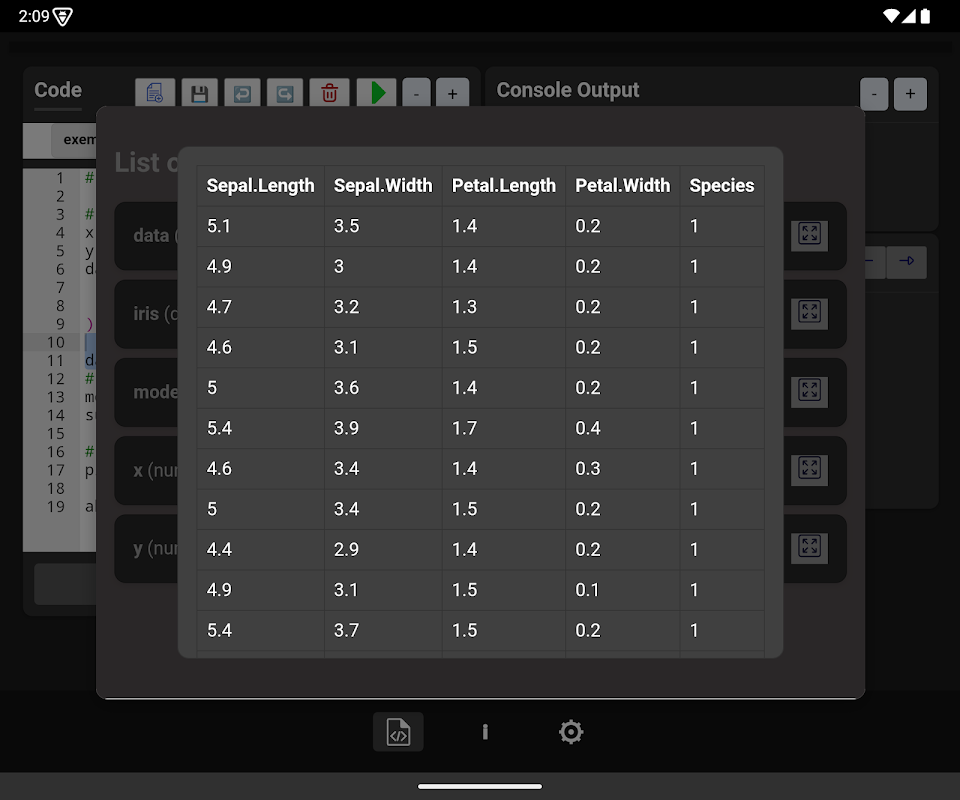 Наслаждайтесь свободой кодирования на R где угодно, независимо от Интернета. Rmobile позволяет запускать сценарии R непосредственно на вашем мобильном телефоне или планшете со встроенной консолью, которая отображает результаты вашего анализа.