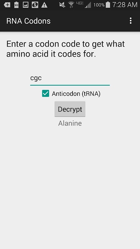 Введите базовых спаривания кодона, чтобы увидеть то, что аминокислотные коды его для.