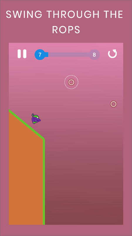 The game is on strings. Tap the screen to hook with string and jump over to cross the level.