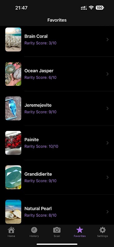 Функция «Моя коллекция» — сохраняйте и упорядочивайте все ваши идентифицированные камни, кристаллы и минералы.