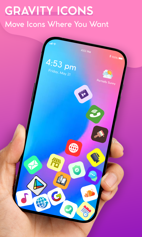 Select the applications, the icons of which you want to give extra roll on magical screen with gravity movement. Apps icons following the gesture start rolling and collision with each other in 3D rotation and gravity movement. Just rolling icons gives effects like someone has shuffled the app icons and photo icons and then let all selected icons with gravity force for gravity movement. Rolling icons gravity launcher also creates photo icons by selecting any image from the phone gallery. Photo icons also swap with gesture in roll world.
