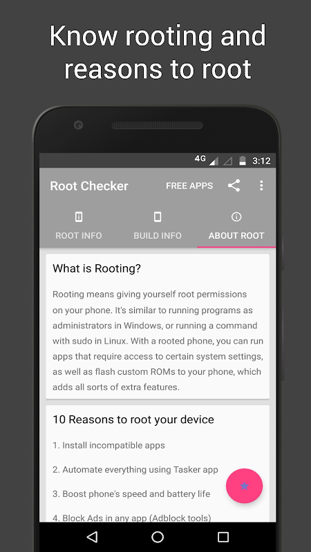 Если вы задаете такие вопросы, как: «Почему я должен учить свое устройство?», «Что такое rooting?» Является ли мой телефон укорененным? Коренные или не укоренившиеся? приложение Root Checker также имеет раздел для ответа на эти запросы.