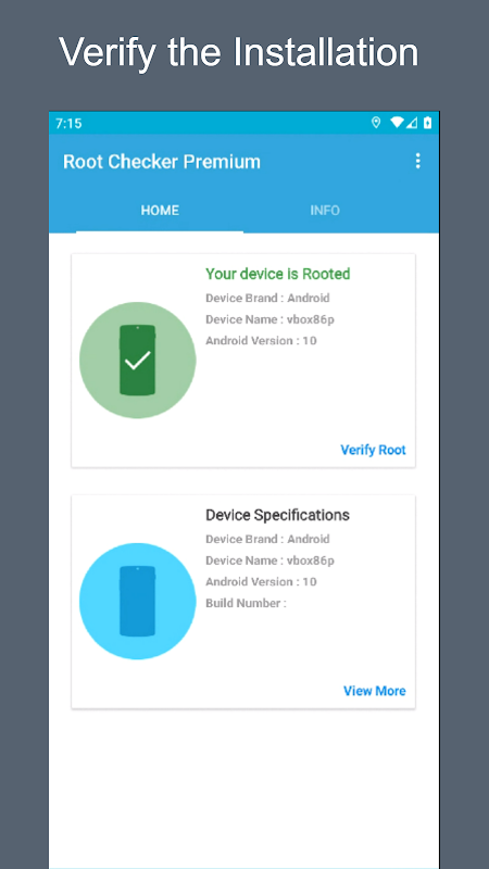 This application will test the device for root (superuser) access using a very simple, quick, and reliable method that has been tested. The su binary is the most common binary used on Android devices to grant and manage root (superuser) access. Root Checker will check and verify that the su binary is located in a common standard location on the device. In addition, Root Checker will verify whether the su binary is properly functioning in granting root (superuser) access.