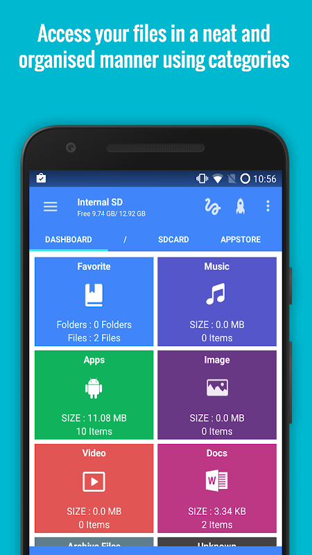 ►File менеджер: Управление файлами так же, как вы делаете на рабочем столе с помощью множественного выбора, Вырезать / Копировать / Вставить, Переместить, Создать, Удалить, Переименовать, поиск, Share, Отправить, скрыть и закладки.