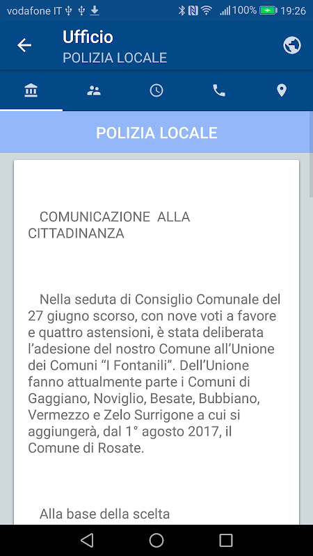 Муниципалитет Rosate App позволяет иметь коммуну информацию в кармане