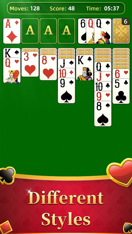 Кроме того, Royal Solitaire вложила много усилий в дизайн карт и фона. Во время игры вы, несомненно, почувствуете отличительный и элегантный стиль по сравнению с другими продуктами. Лица карт четкие и великолепные, что гарантирует, что вы не устанете даже после продолжительной игры. Кроме того, Royal Solitaire включает в себя следующие функции: