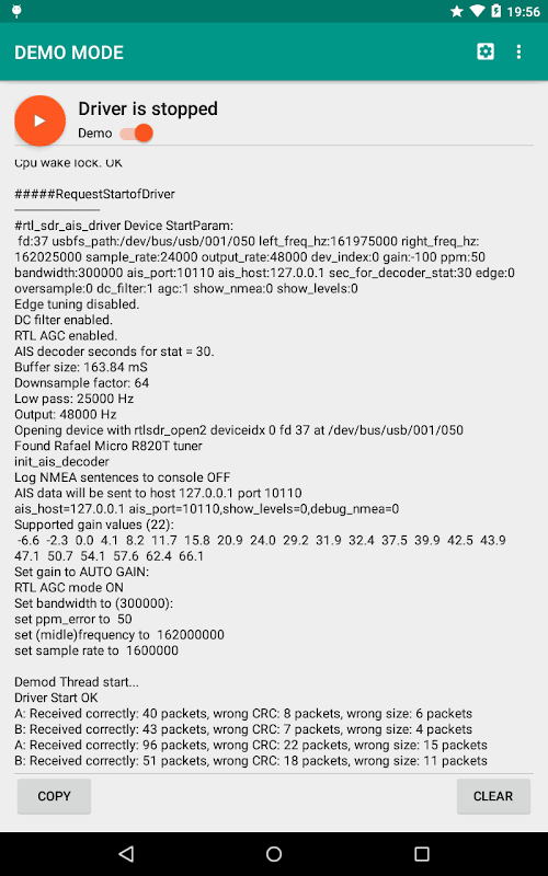 Приложение декодирует сигналы VHF, полученные через USB-ключ.