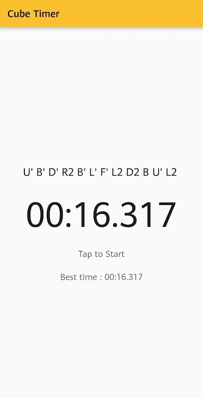 The design is basic and you can start and stop the timer with simple tap. Scramble is shown above the timer initially and resets after you stop the timer everytime.
