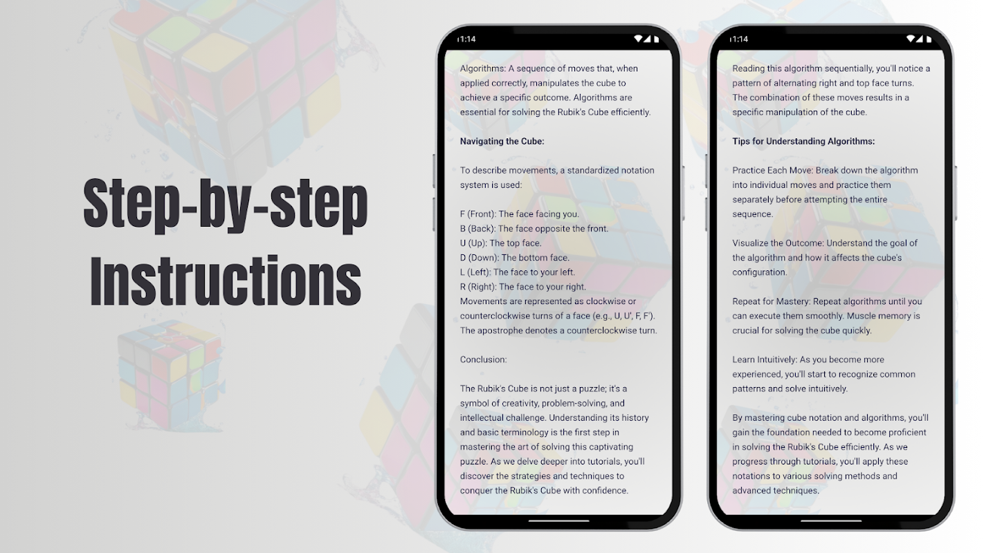 Настраивайте и собирайте кубики Рубика размером от 2x2 до 5x5, учитесь с помощью обучающих программ.
