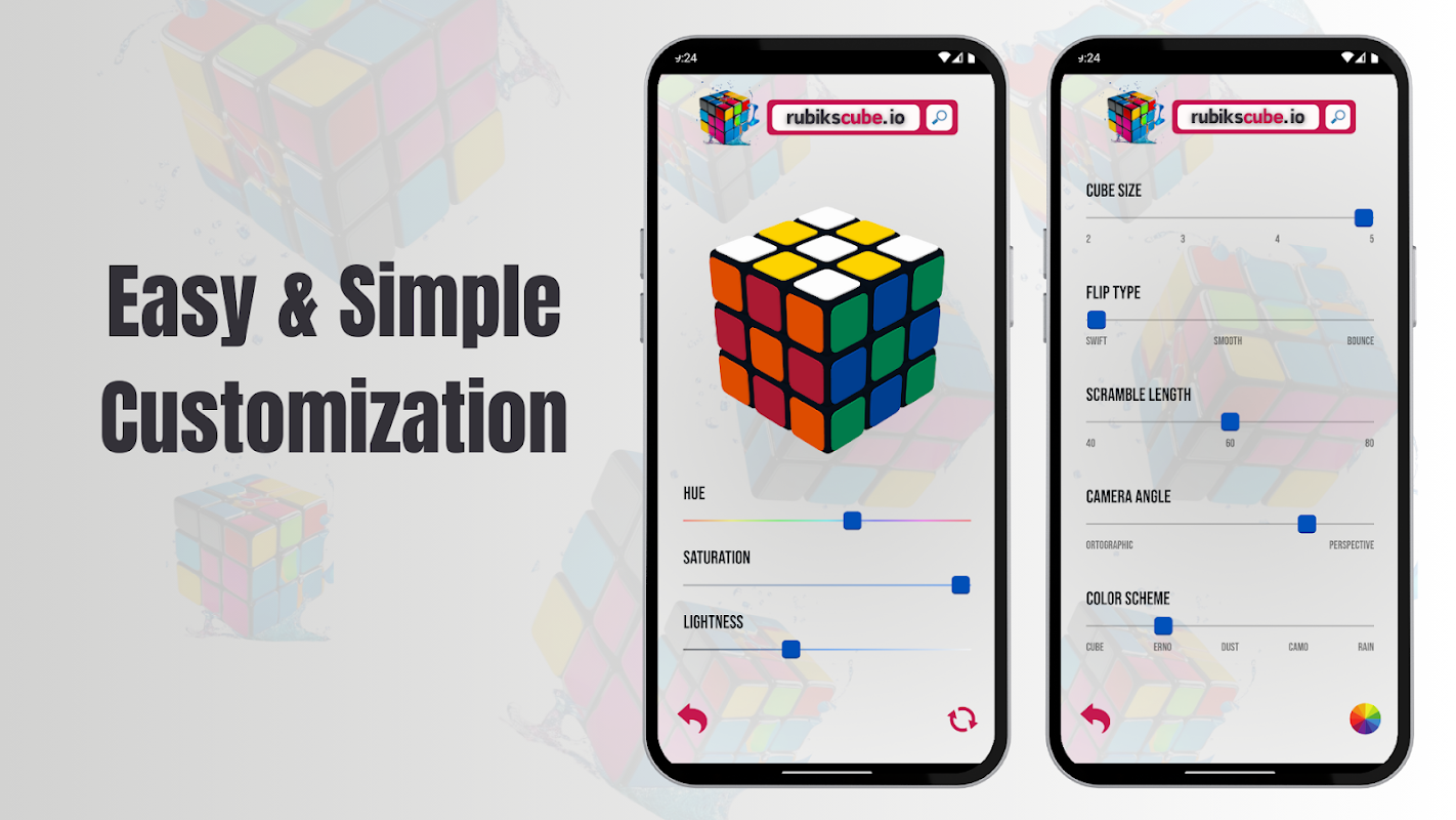 Настройте кубики Рубика: персонализируйте кубики Рубика 2x2, 3x3, 4x4 и 5x5, меняя цвета и темы.
