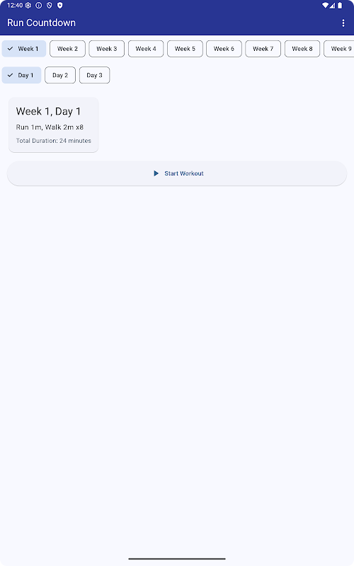 - Каждая неделя состоит из 3 тренировочных дней с определенными интервалами бега/ходьбы