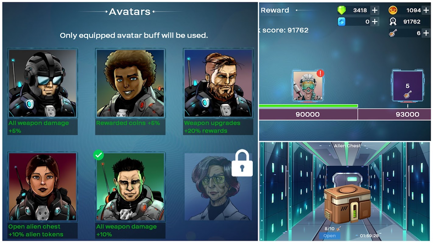 In Run Or Hunt game you can unlock many soldiers with powerful and unique abilities. Upgrade soldiers to higher level to get special buffs. Upgrade different guns for more damage. Unlock alien pets and use them on your side while fighting against alien intruders. Battle and defeat enemies as fast as possible