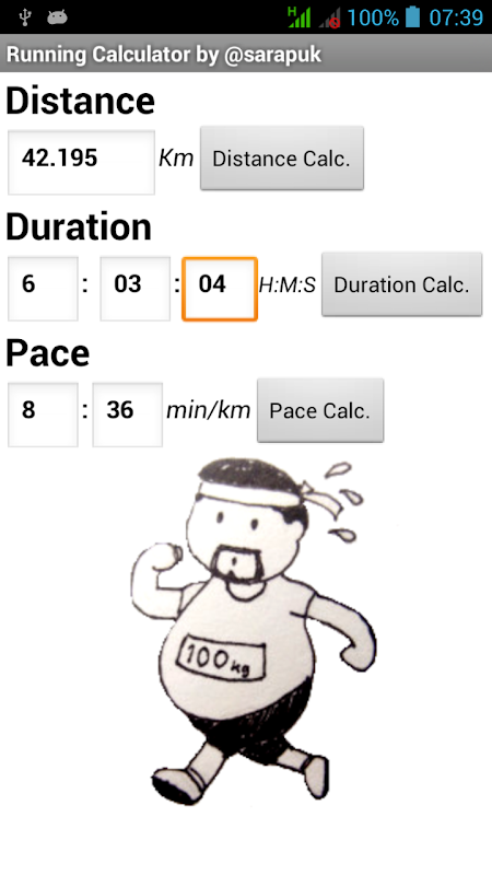Moreover, this application will predict your running state with cartoon if you have weigh about 100kg.