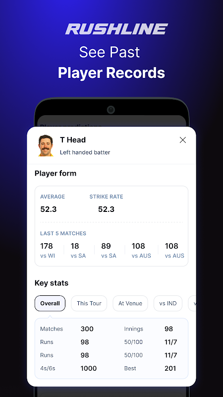 Скачайте Rushline сегодня и переосмыслите свой игровой день с помощью нового стильного дизайна и интеллектуальных решений для крикета, основанных на данных.