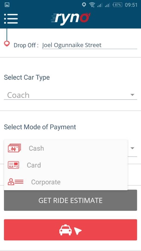 Возьмите надежный и доступный поездку в Лагосе в течение нескольких минут с помощью приложения Ryno.