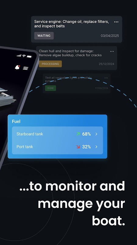 Sailsense — это больше, чем просто мониторинг. Это ваш цифровой помощник для управления задачами и обслуживания. Планируйте техническое обслуживание, отслеживайте ремонт и управляйте обращениями в службу поддержки непосредственно в приложении, обеспечивая бесперебойную связь с вашей верфью или поставщиком услуг.
