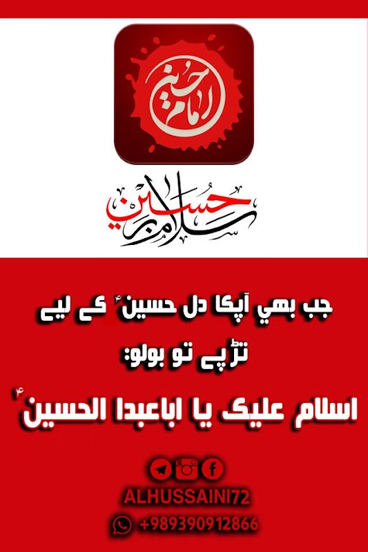 یہ ایپلیکیشن ایک ویجیٹ ہے جو ہر بار اپکے موبائل اسکرین کے آن ہونے پر امام حسین علیہ السلام پر سلام بھیجے گا، اس طرح آپ امام حسین علیہ السلام پر زیاده سے زیادہ سلام بھیج سکتے ہیں.