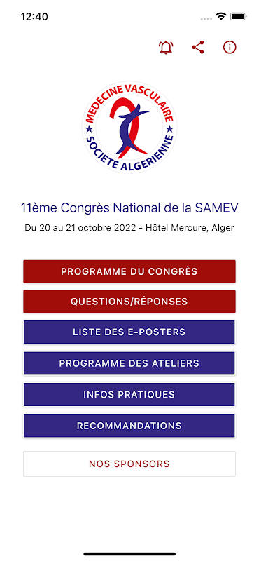 Ваше приложение SAMEV 2022 предлагает вам доступ к различной информации об этом событии: