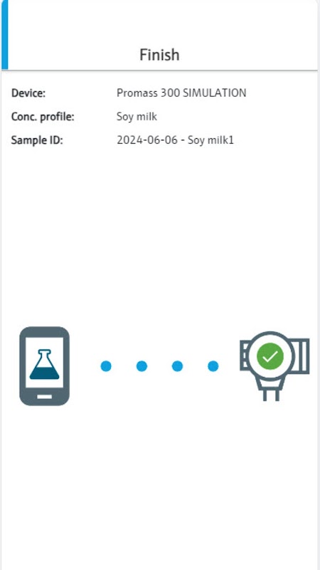 Приложение автоматически регистрирует соответствующие данные от Promass во время отбора проб через соединение Wi-Fi. Информация о стабильности процесса и диагностике устройства предоставляется для оценки качества проб. На основе результатов лабораторного анализа Sample and Adjust корректирует функцию концентрации Promass и соответствующим образом обновляет ее.
