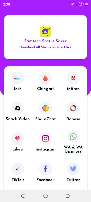 You don't need to have separate Status Saver apps for each of your favourite social media platforms, Samtech Status Saver App can handle that for you.