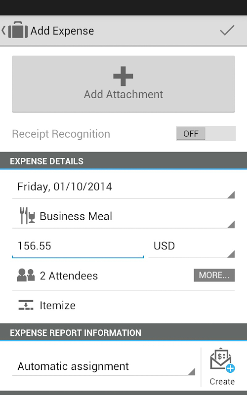 • Add new expenses, add attendees, claim mileage, and itemize expenses while on the road