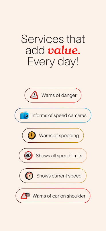 * Оповещения о проверке скорости, авариях и других опасностях — по всей Европе.