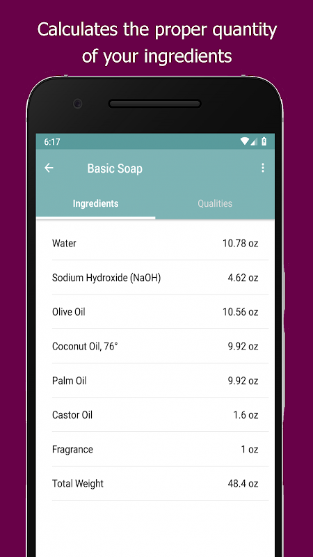 Современное мыло калькулятор, чтобы помочь вам сформулировать традиционное мыло ручной работы рецепты. Обработайте свою собственную смесь из масел и щелочь, что идеальная мыльница.