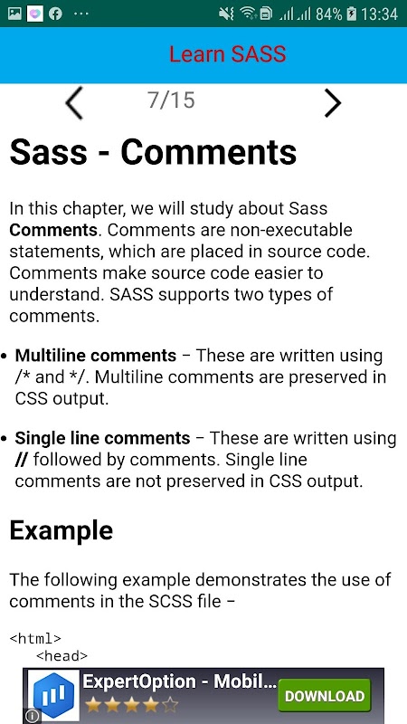 SASS (Syntactically Awesome Stylesheet) is a CSS pre-processor, which helps to reduce repetition with CSS and saves time. It is more stable and powerful CSS extension language that describes the style of document structurally. This tutorial covers the basics of SASS.