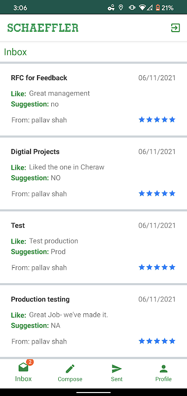 The intended audience of this app are Schaeffler Group employees to provide constructive feedback for specific events, meetings and workshops . The participants/Organizers will receive this feedbacks privately (one-to-one) with the purpose of enhancing their skills.