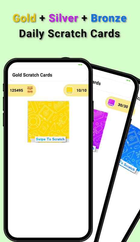 In this game, you will find three types of scratch cards to win. Bronze scratch cards, Silver Scratch Cards, and Gold Scratch Cards. You will get daily new scratch cards to win cash and coins. All you have to do is scratch and win. The scratch and win cash and coins app offer a wide variety of daily scratch cards for you. You can choose any scratch card you like to scratch and win cash and coins.
