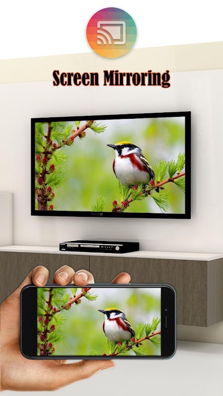 Screen Mirroring app Casts mobile display to your TV so you can play videos, audio song and view photos from your device to your TV even you can play Games by Mirroring display to TV. Screen Mirroring mirrors, broadcast or casts the screen and audio of your android mobile You can share your Android screen live to any other device or PC on your local network flawlessly.