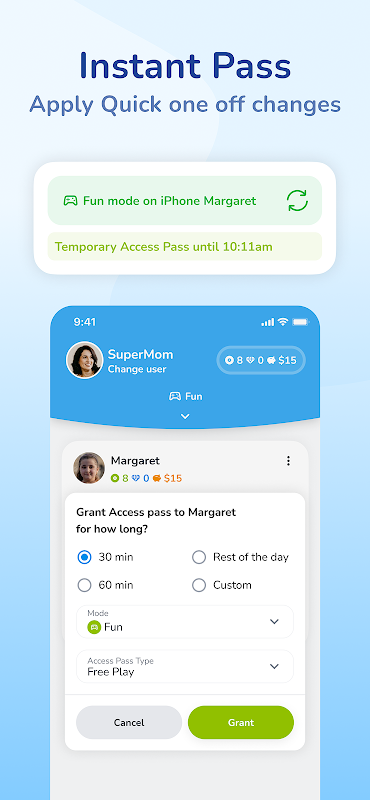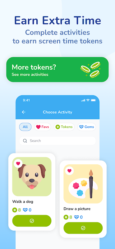 Зарабатывайте больше экранного времени: наблюдайте, как ваши дети с радостью выполняют работу по дому, занимаются спортом, домашними заданиями и развлекаются, чтобы заработать дополнительное время перед экраном или деньги на карманные расходы (или и то, и другое!).