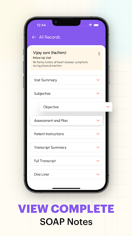 Получайте структурированные заметки по субъективным, объективным, оценочным и плановым вопросам (SOAP) сразу после каждого визита.