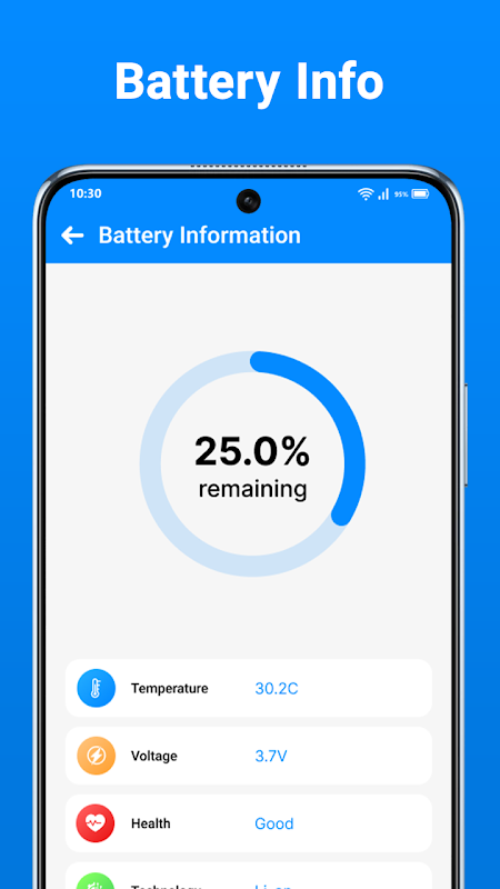 Подробная информация об аппаратном обеспечении, программном обеспечении, системных характеристиках, памяти и аккумуляторе вашего устройства. Лучше понимайте и оптимизируйте свое устройство.