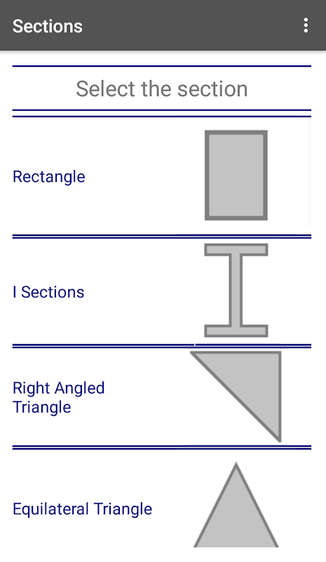 This app can calculate area,Second moment of area , torsion constant,warping constant, moment of resistance and centrifugal for different sections