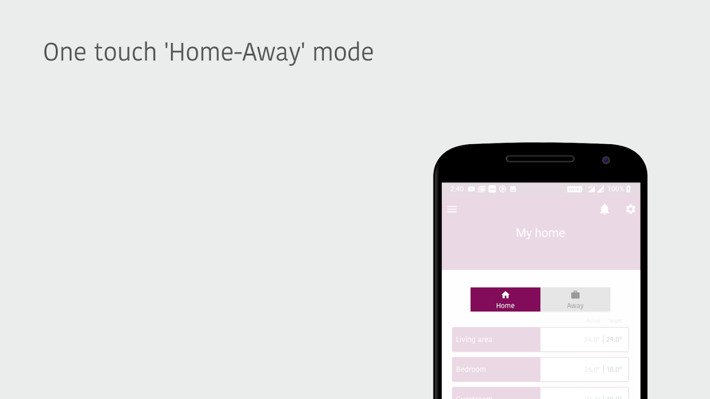 Функция Home-Away одним щелчком мыши для изменения целевой температуры