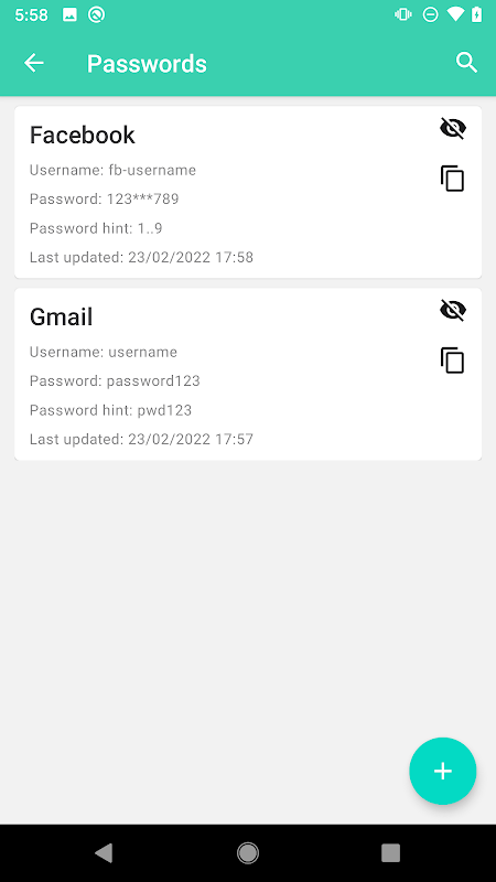 - Password: you can save the accounts you often forget, for security you can only save the reminder password, not the correct password. The password will be encrypted when entered and encrypted again before saving to the device.