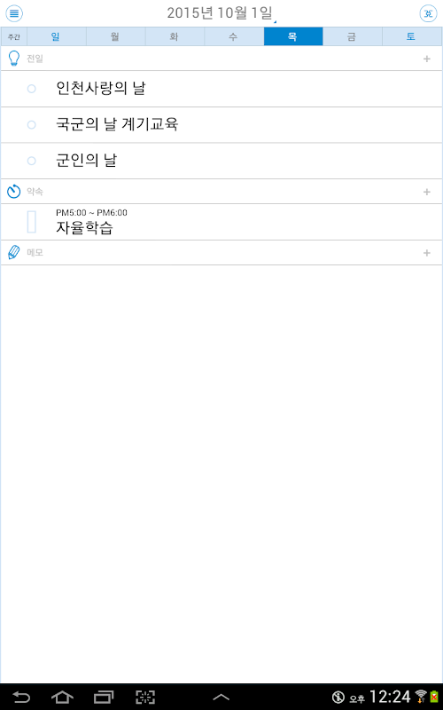 오늘 하이라이트, 시간이 있는 일정, 시간이 미지정된 메모형태의 일정 표시
