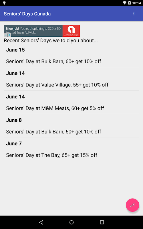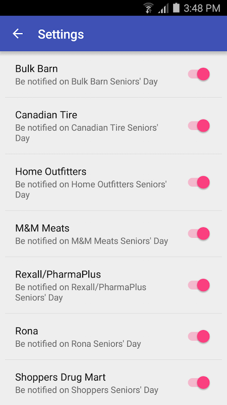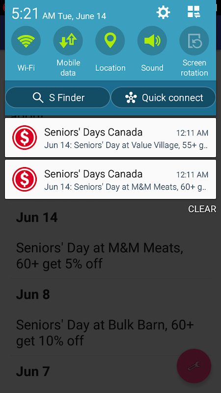 Почему бы не получить уведомление, когда в нескольких крупных магазинах будет День пожилых людей, и сэкономить немного денег.